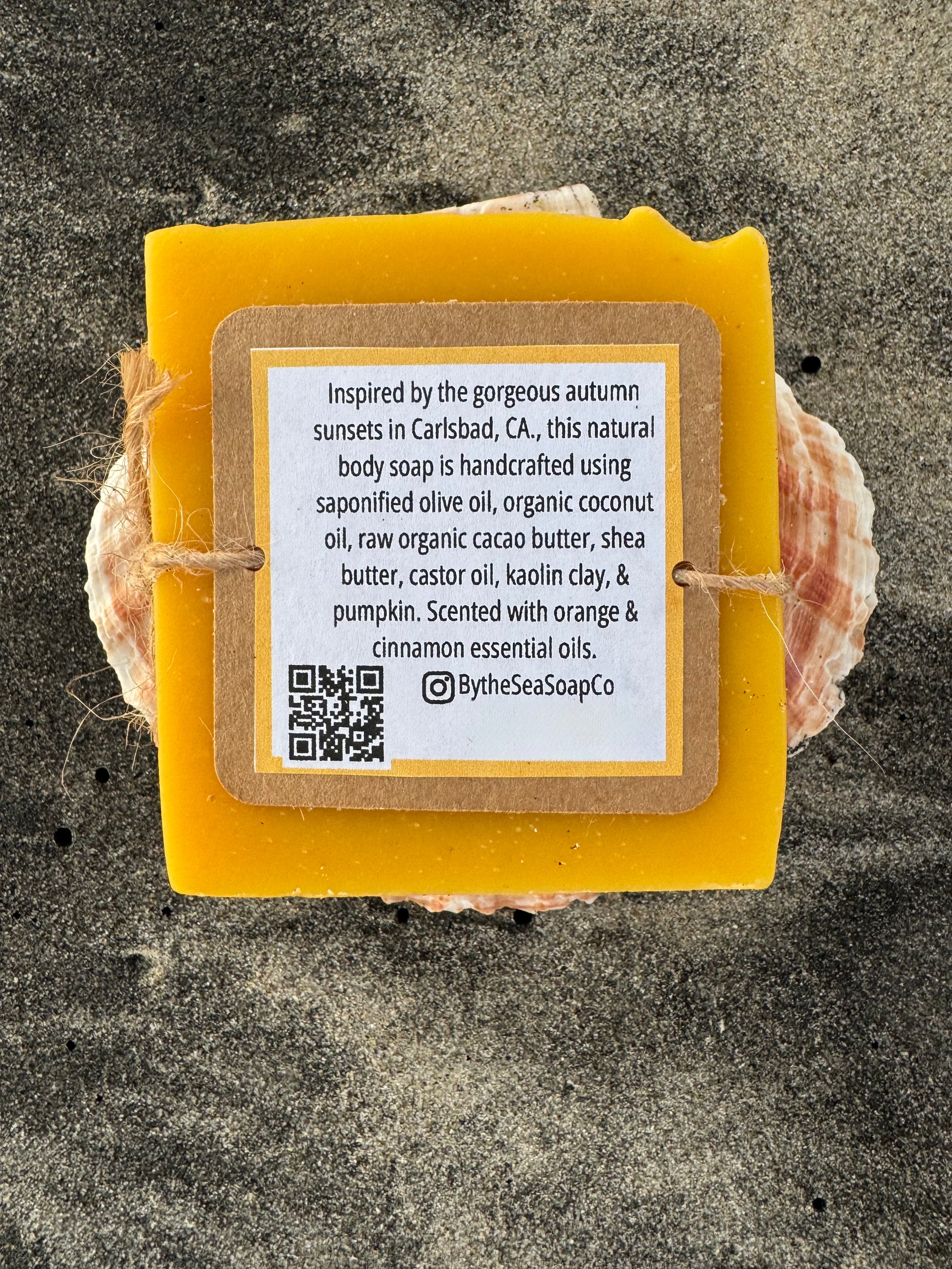 Inspired by the golden glow of fall sunsets over the Pacific, this cozy bar captures the warmth of the season in every lather. Handcrafted in small batches with nourishing plant-based oils, creamy pumpkin, and a comforting blend of orange and cinnamon, it’s like wrapping your skin in the soft light of an October evening.